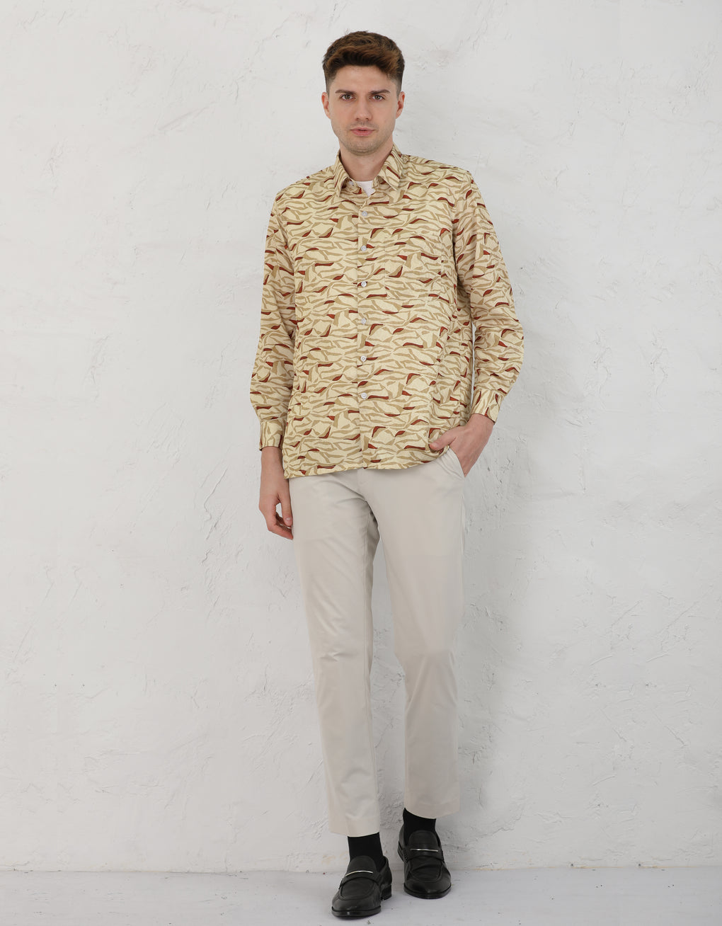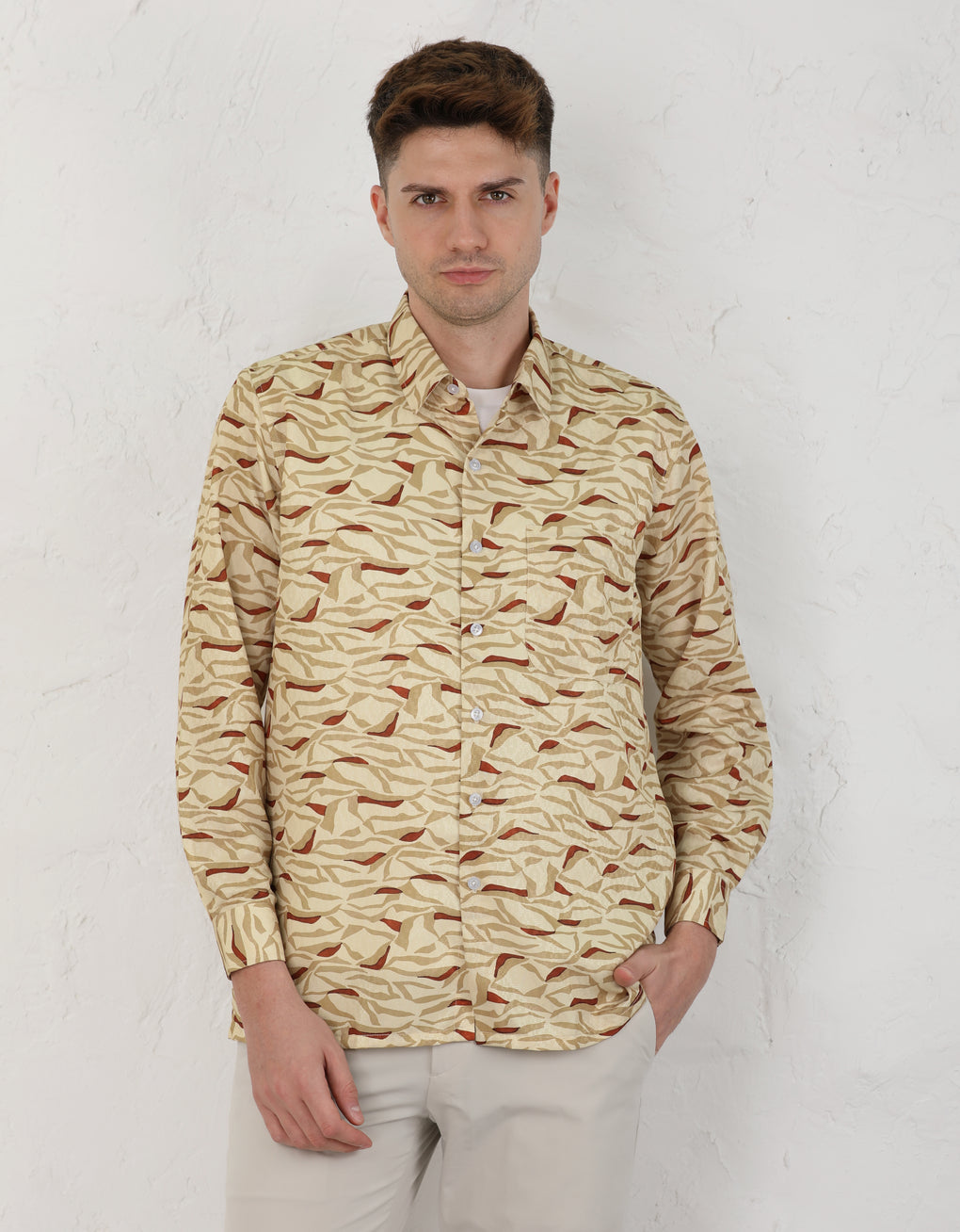 Regular fit collar shirt with long sleeves and button fastening on the front.