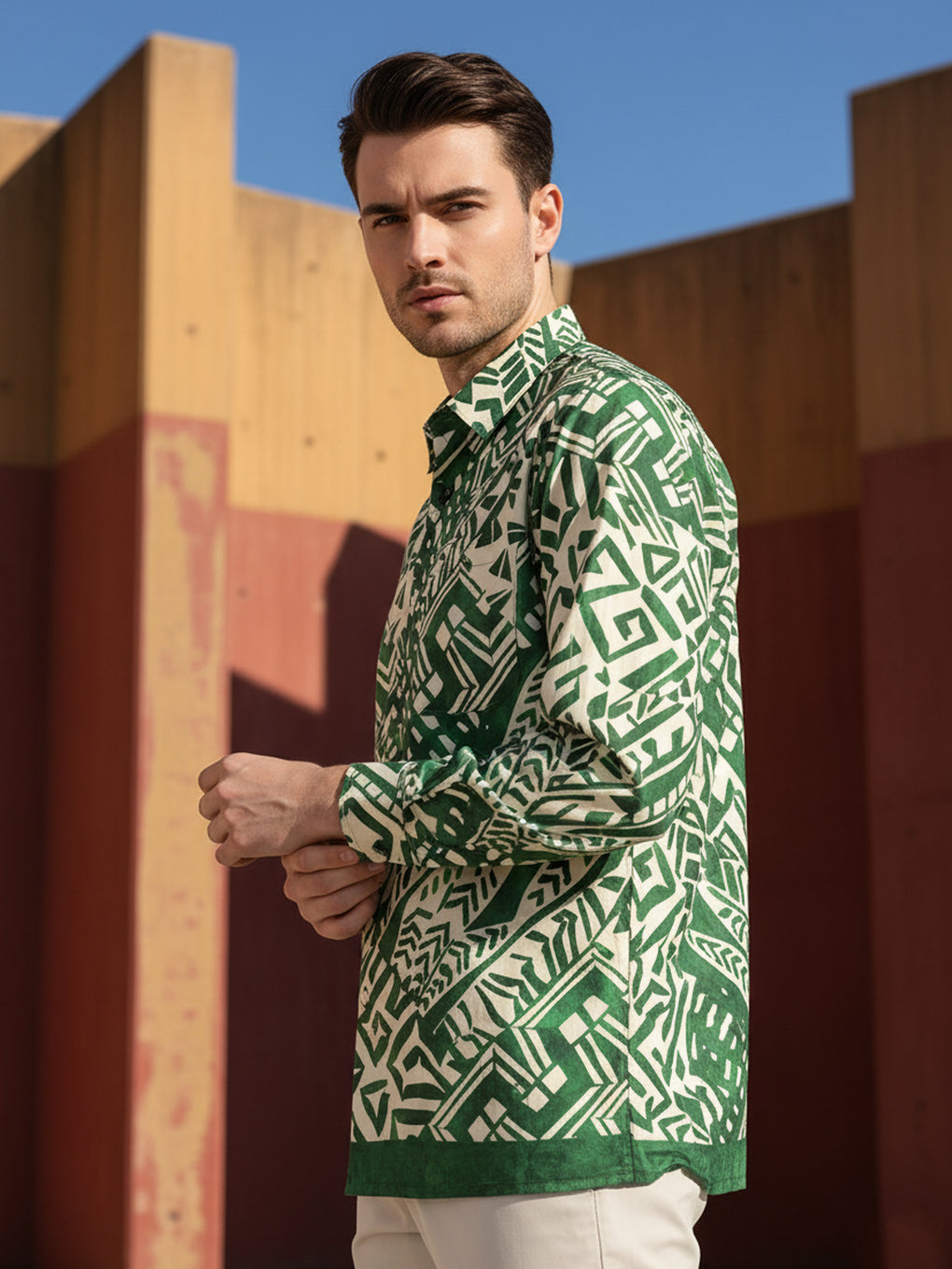 Material: Printed Jacquard Crepe - Experience the luxurious comfort of soft and breathable fabric. The lightweight and flowy material will keep you feeling comfortable and stylish all day long.