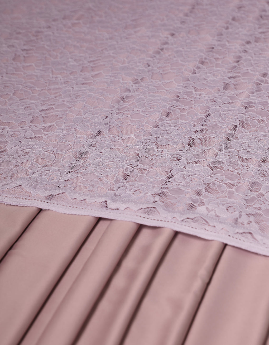 Single Tone Lace Mix and Match is our latest collection that combined with 2 meters of 58 inches width single tone lace and 3.5 meters of 60 inches width plain satin as it's full lining. This lace is a delicate fabrics with flower, leaf and abstract motifs. It is very suitable to make baju kurung, dress and tops.