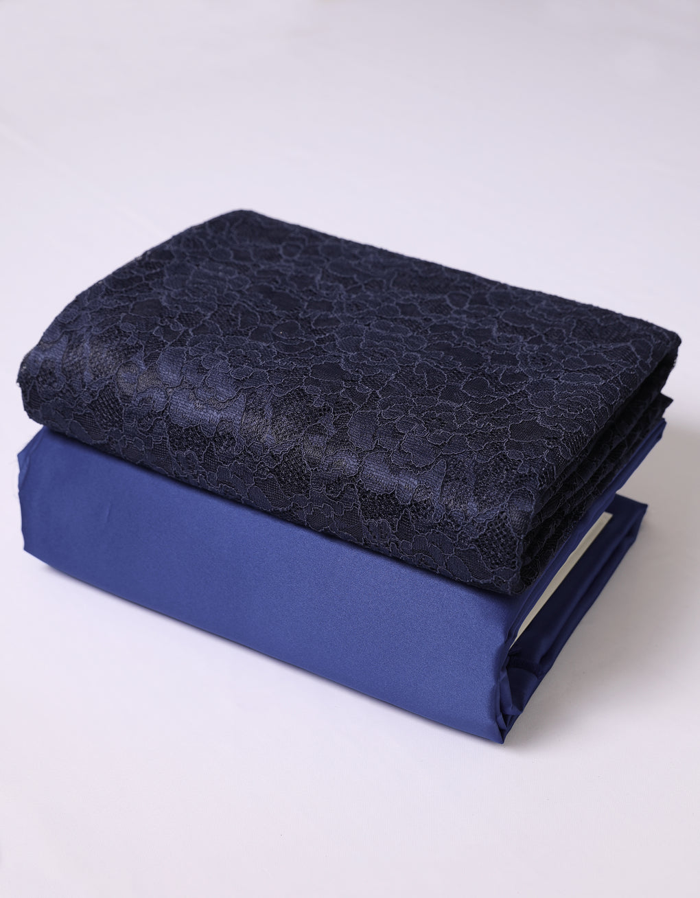 Mix And Match Lace Single Tone Lace Rose V2 - Navy Blue + Satin Royal Blue