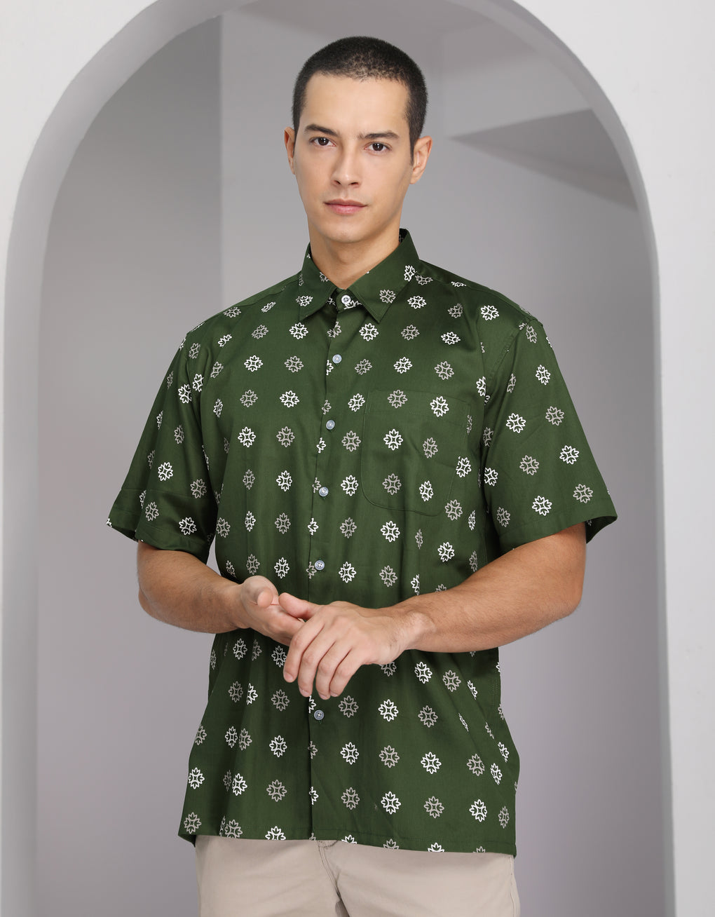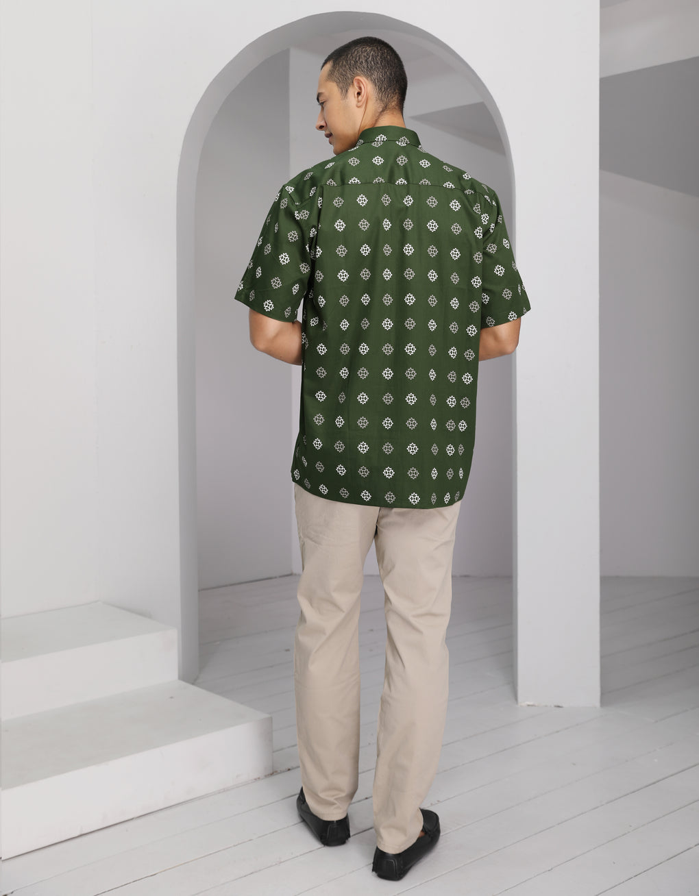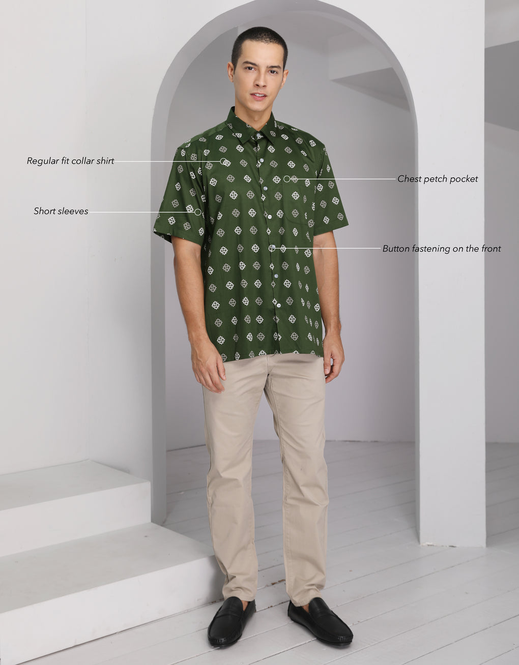✿ Regular fit collar shirt with short sleeves and featuring a chest patch pocket and button fastening on the front