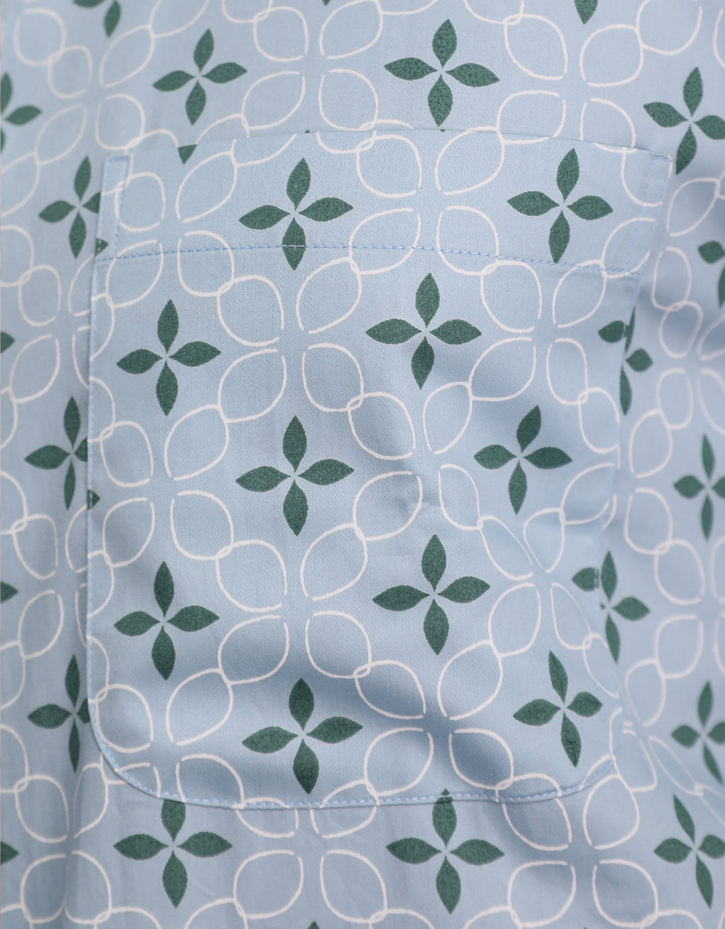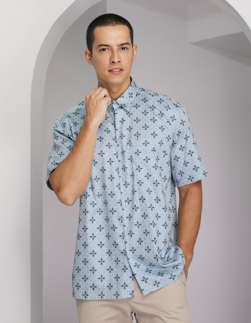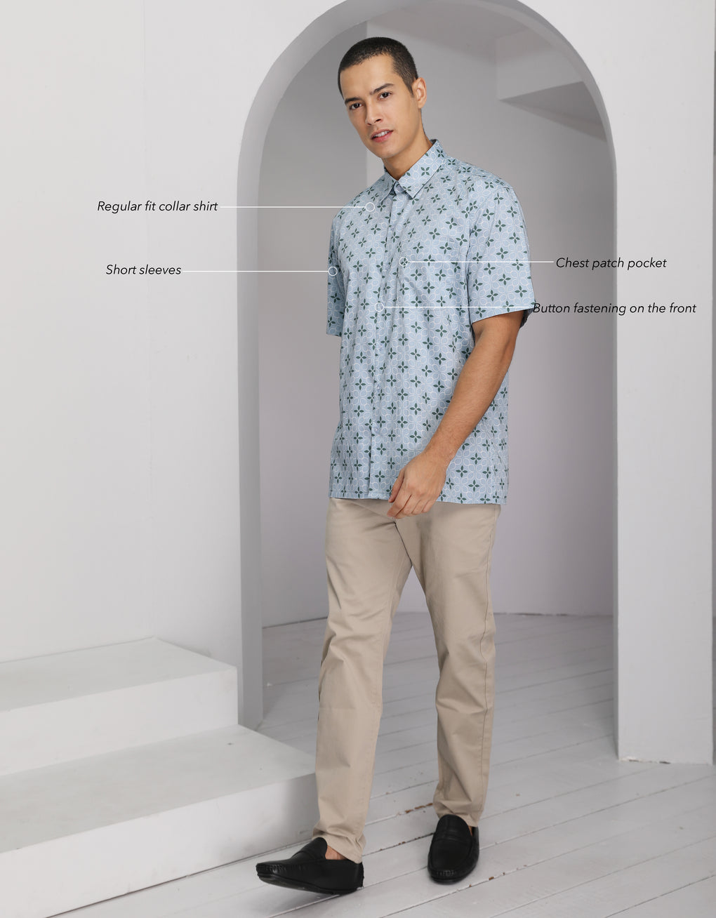 Regular fit collar shirt with short sleeves and featuring a chest patch pocket and button fastening on the front