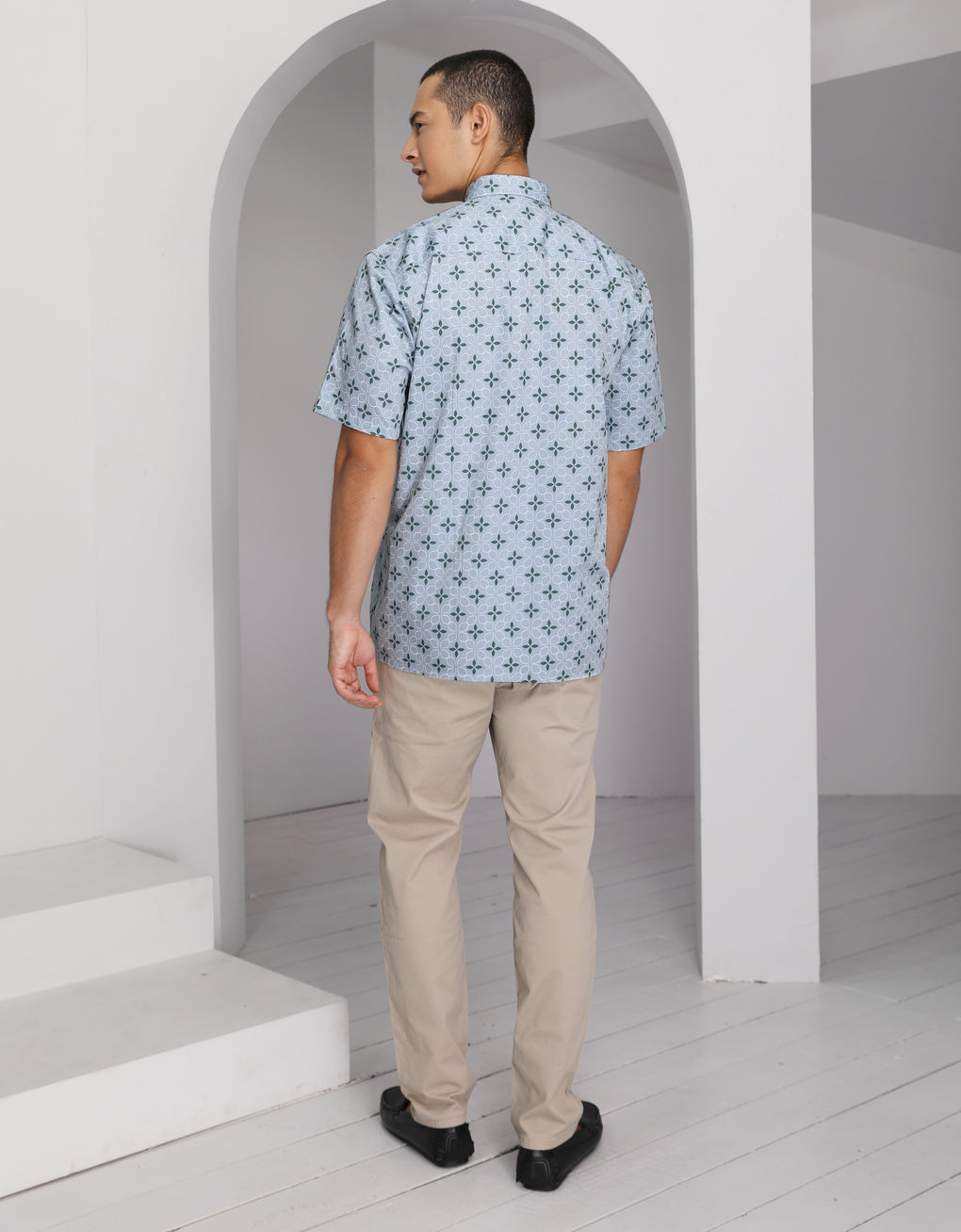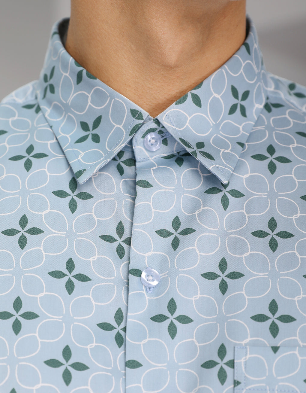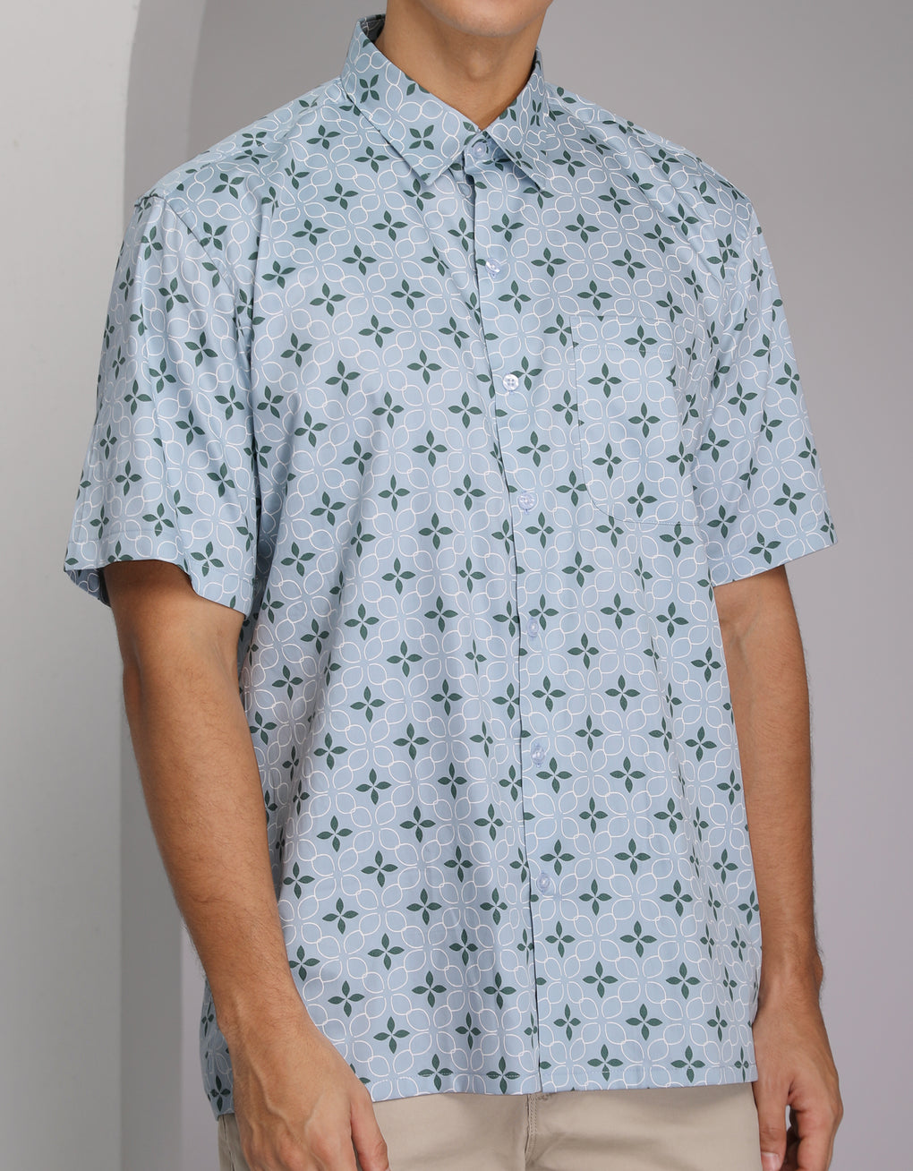 Regular fit collar shirt with short sleeves and featuring a chest patch pocket and button fastening on the front